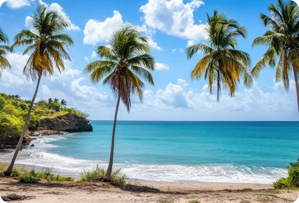 La ubicación en la costa sureste con playas privadas, ambiente tropical y naturaleza, “brisa del mar Caribe”, “vistas al agua”, “paisaje tropical privilegiado”.
