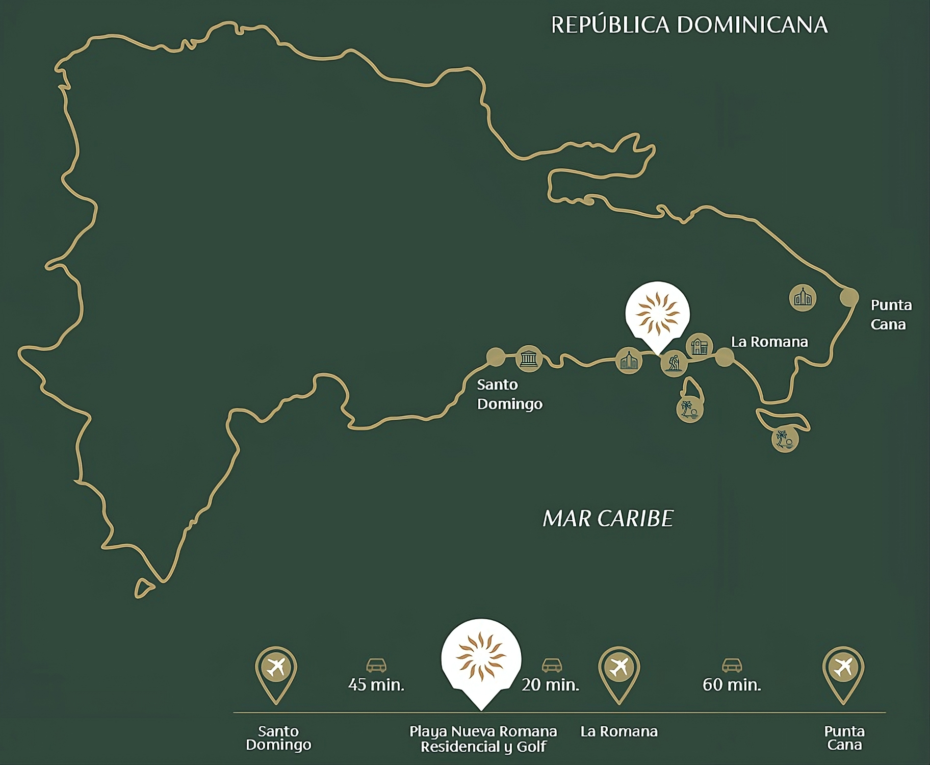 Ubicada en el corazón del Caribe, Playa Nueva Romana es una maravilla de residencial que se extiende a lo largo de más de 600 hectáreas bañadas por las aguas del mar Caribe. Este enclave único es un oasis de bienestar y lujo, diseñado para satisfacer los más altos estándares de comodidad y belleza.